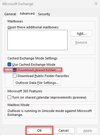 - In the server settings window, select Advanced and verify if the Download Shared Folders option is checked. If not, check the checkbox and click OK.